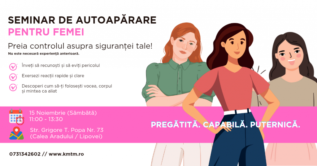 Ce se întâmplă la seminarul nostru “Autoapărare, la feminin” din 15 Noimebrie